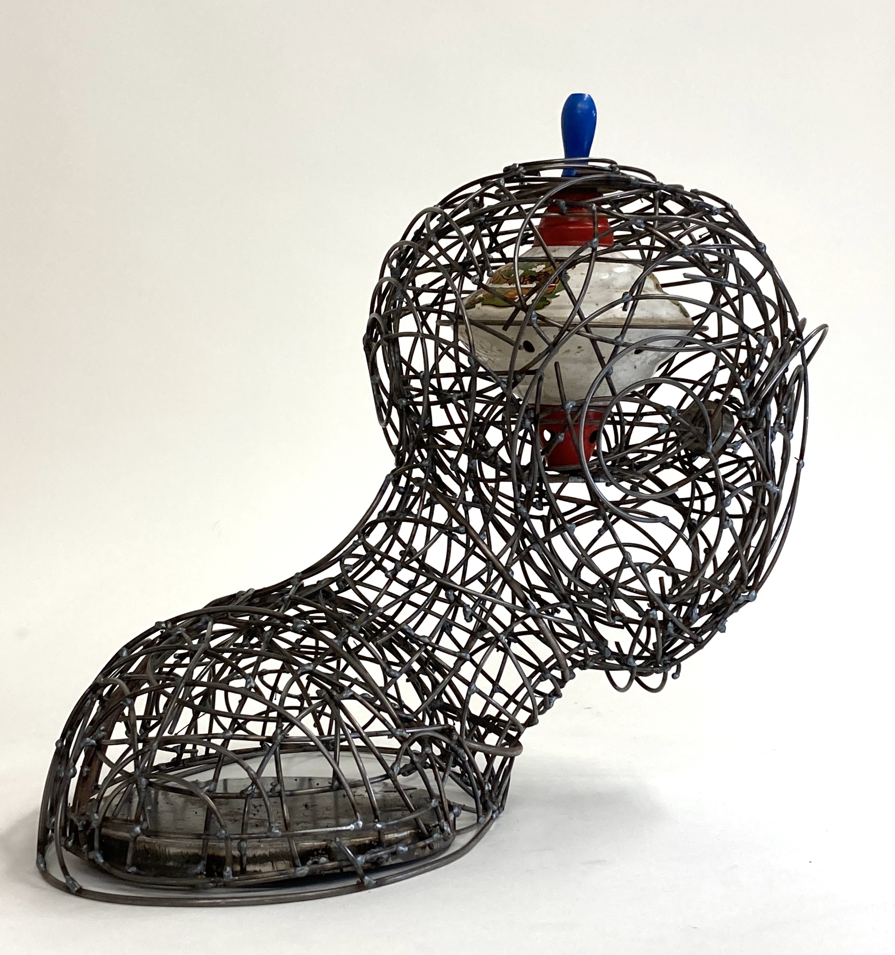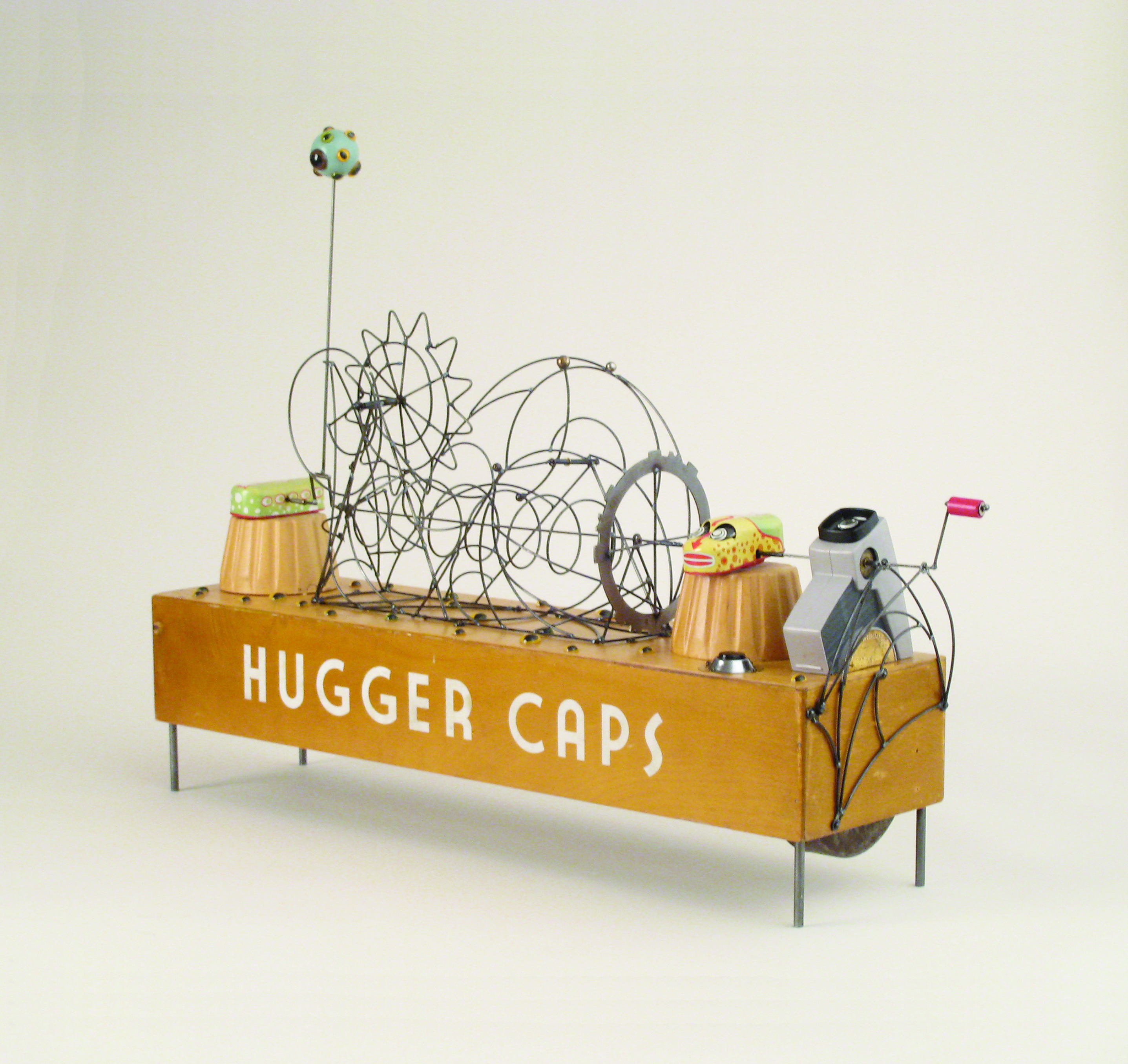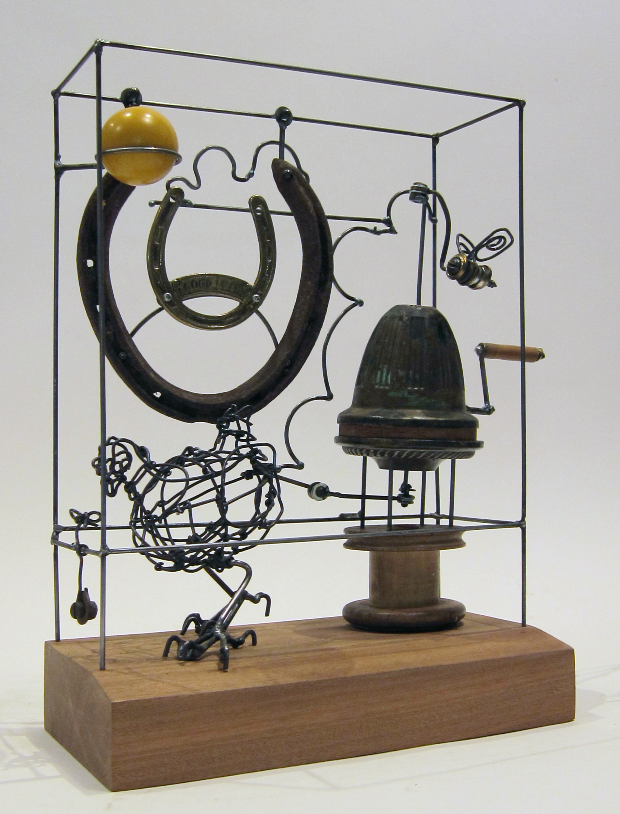 Kramer’s sculptures evolved from a found object aesthetic rooted in assemblages to wire forms, woven vessels, and kinetic constructions sometimes inspired by the earliest sonograms of his first child. This fascination with implied function and mechanical life has guided him toward automata: moving mechanical devices that imitate life, sparking a sense of wonder in their movement. His drawing machines, blur the line between penny arcades and science museums, transforming simple mechanisms into mesmerizing magical performances.