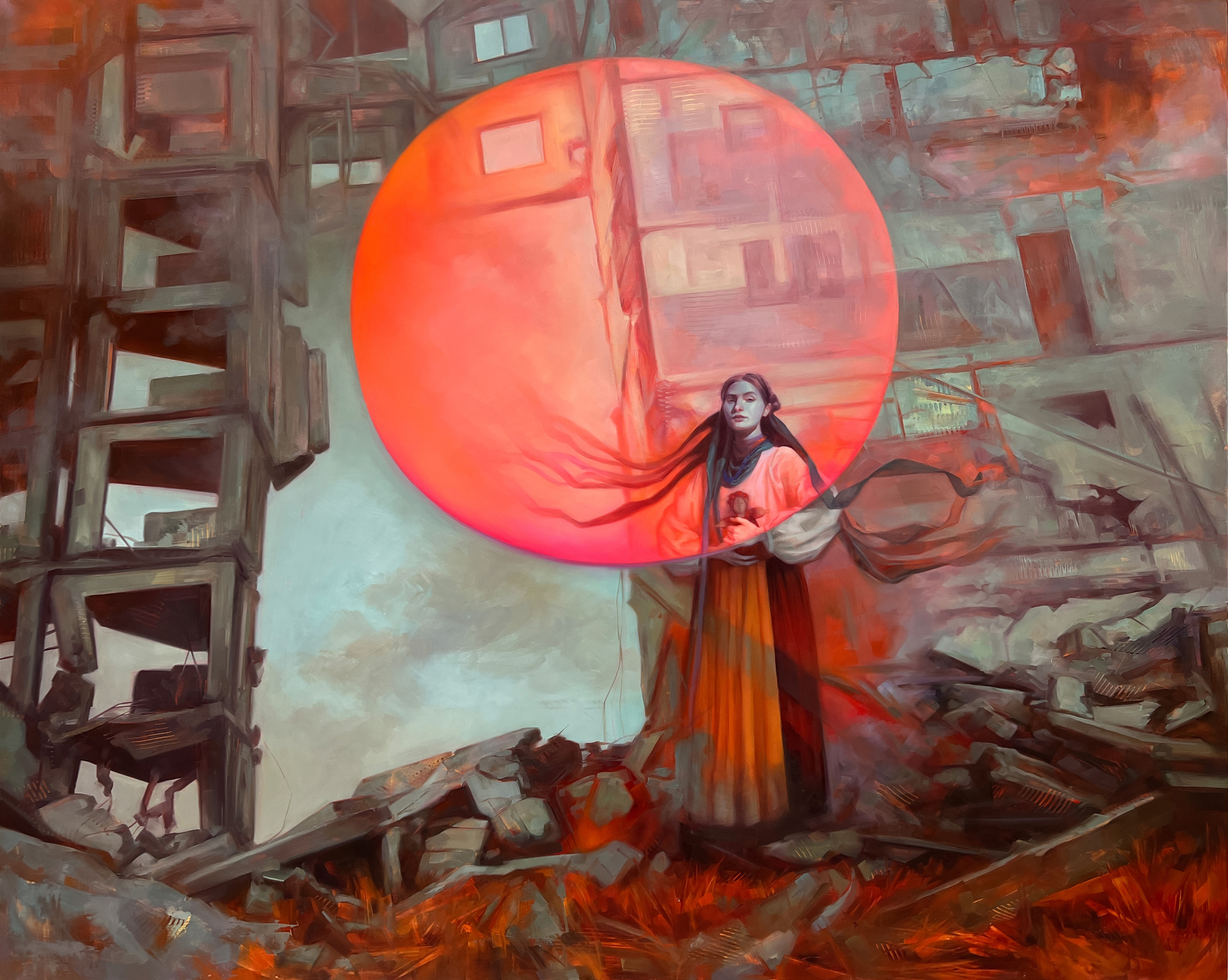 Zigaloe, Ourstory, 2025. Oil on panel, 48" x 36".