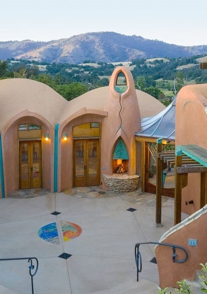 Hubbell started building the first of eleven organically-inspired structures in 1958. The intent was to create a home that appeared to grow out the landscape using the natural shape and materials of the land. The first few structures were built with no bulldozers, all footings were hand-dug and wildflowers were kept and appreciated for their beauty. The architectural styles of the buildings are influenced by adobe structures in New Mexico, where Hubbell lived for a time as a boy. Each building incorporates intricate details including mosaic murals, soaring arches, stained glass windows and a balance of natural materials from seashells to gemstones.