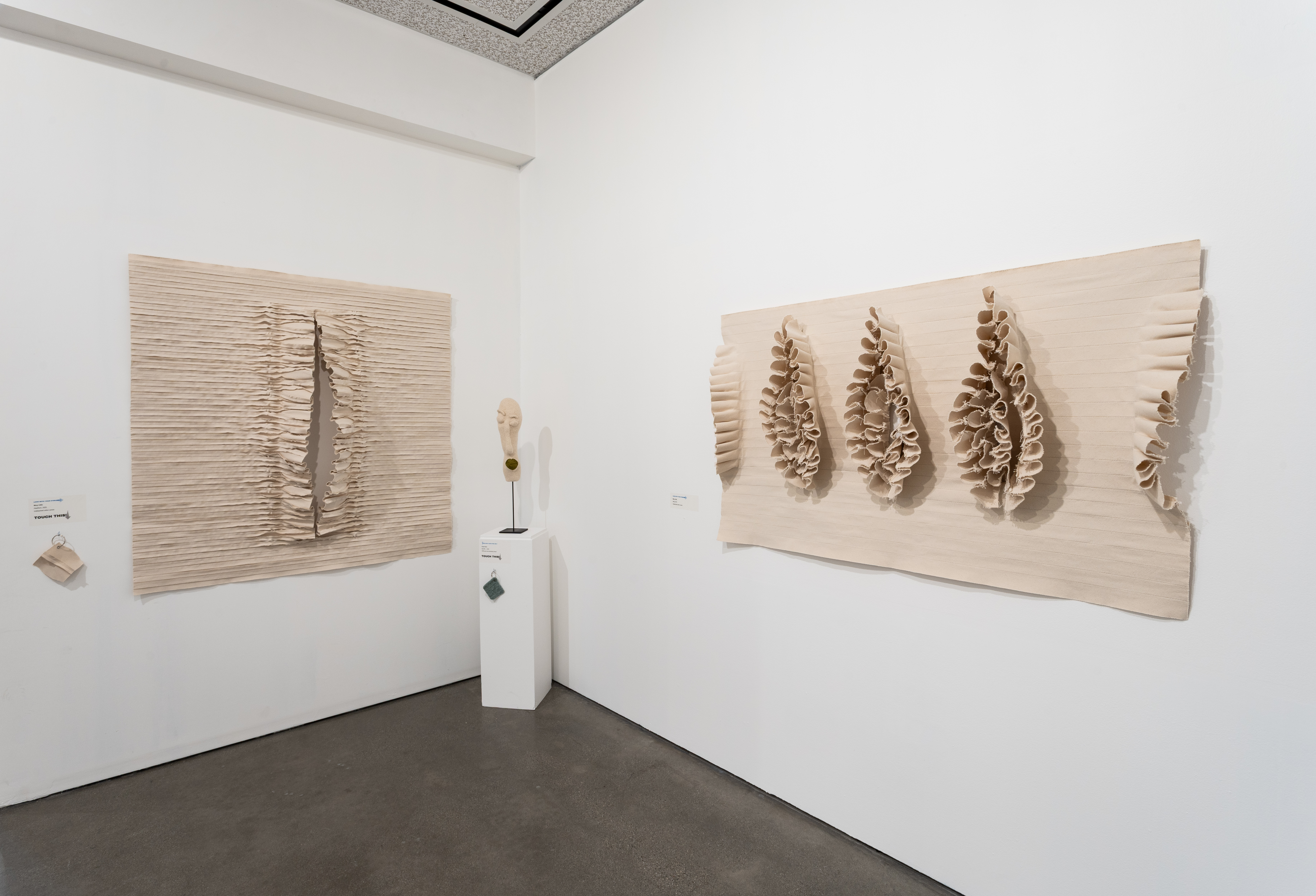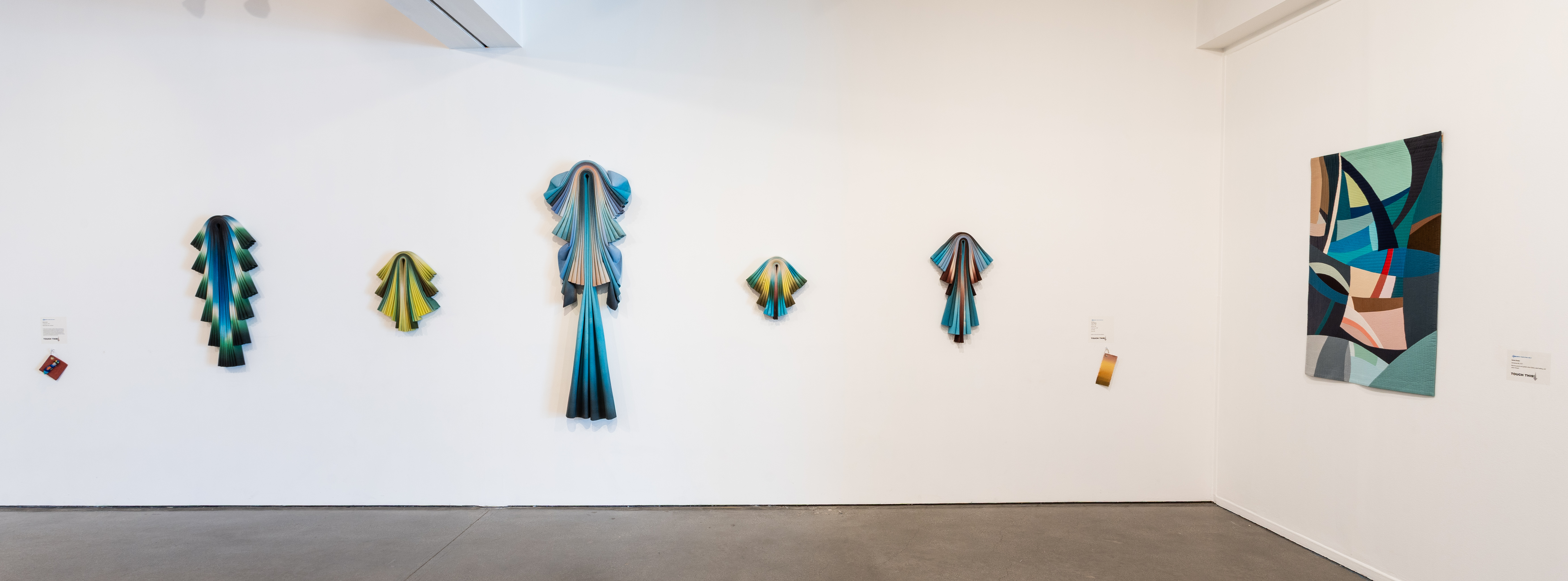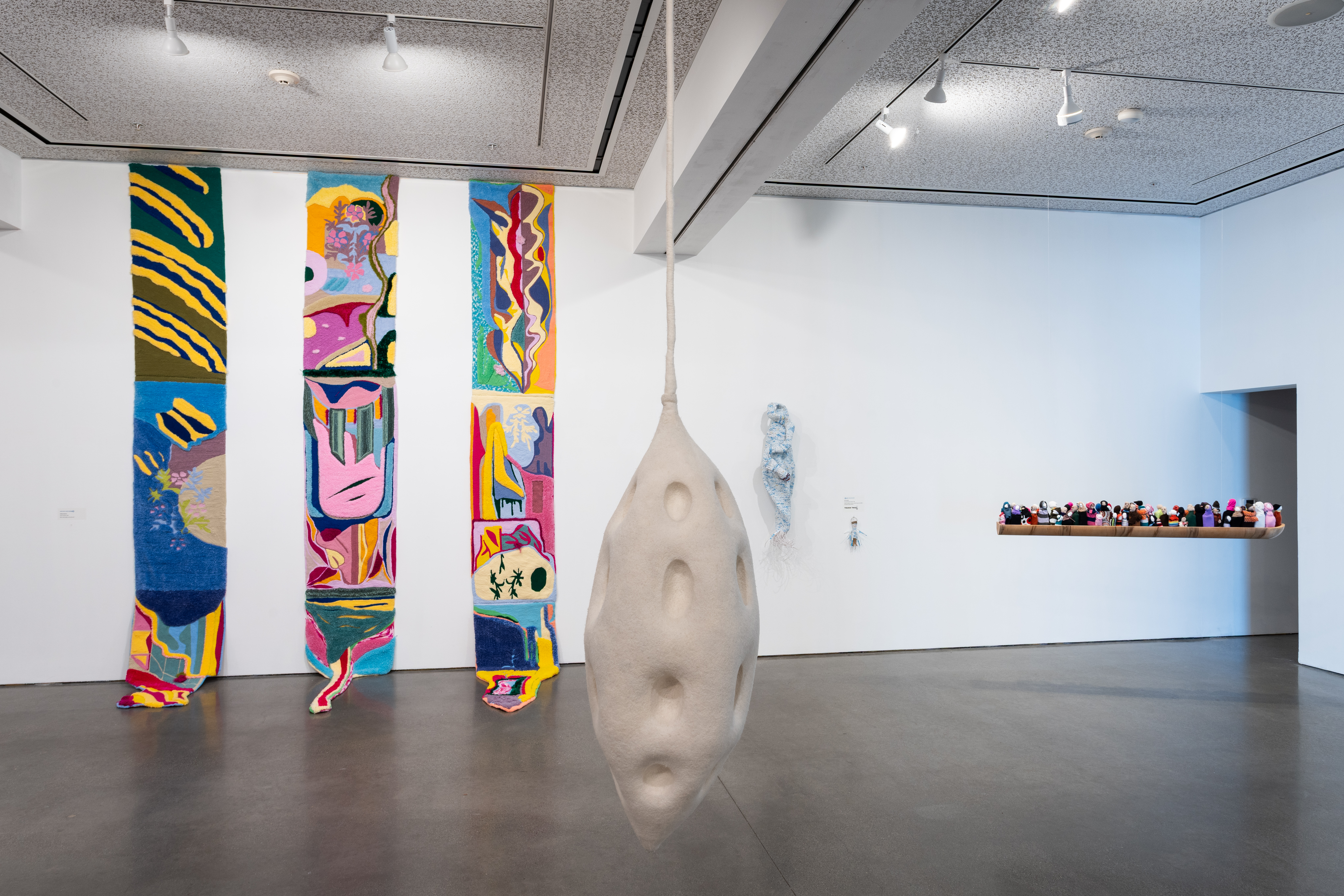 Rich in scope and dimension, these works invite viewers to step into a world where every stitch tells a story. In a time when so many of our daily experiences involve interacting with the smooth screens of electronics, these dynamic forms offer a refreshing allure—engaging both creators and viewers with rich and tangible materials. This exhibition stands as both a counterpoint to our digital world and a profound extension of contemporary sensory experience.