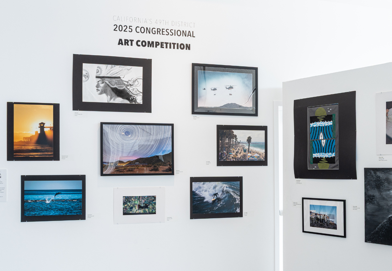 Each spring, the Congressional Institute sponsors a nationwide high school visual art competition to recognize and encourage artistic talent in each congressional district. Three judges including OMA Executive Director Maria Mingalone review submissions from the California 49th Congressional District high schools and select the pieces to be exhibited at OMA for their creativity of expression, use of materials, and quality of presentation.