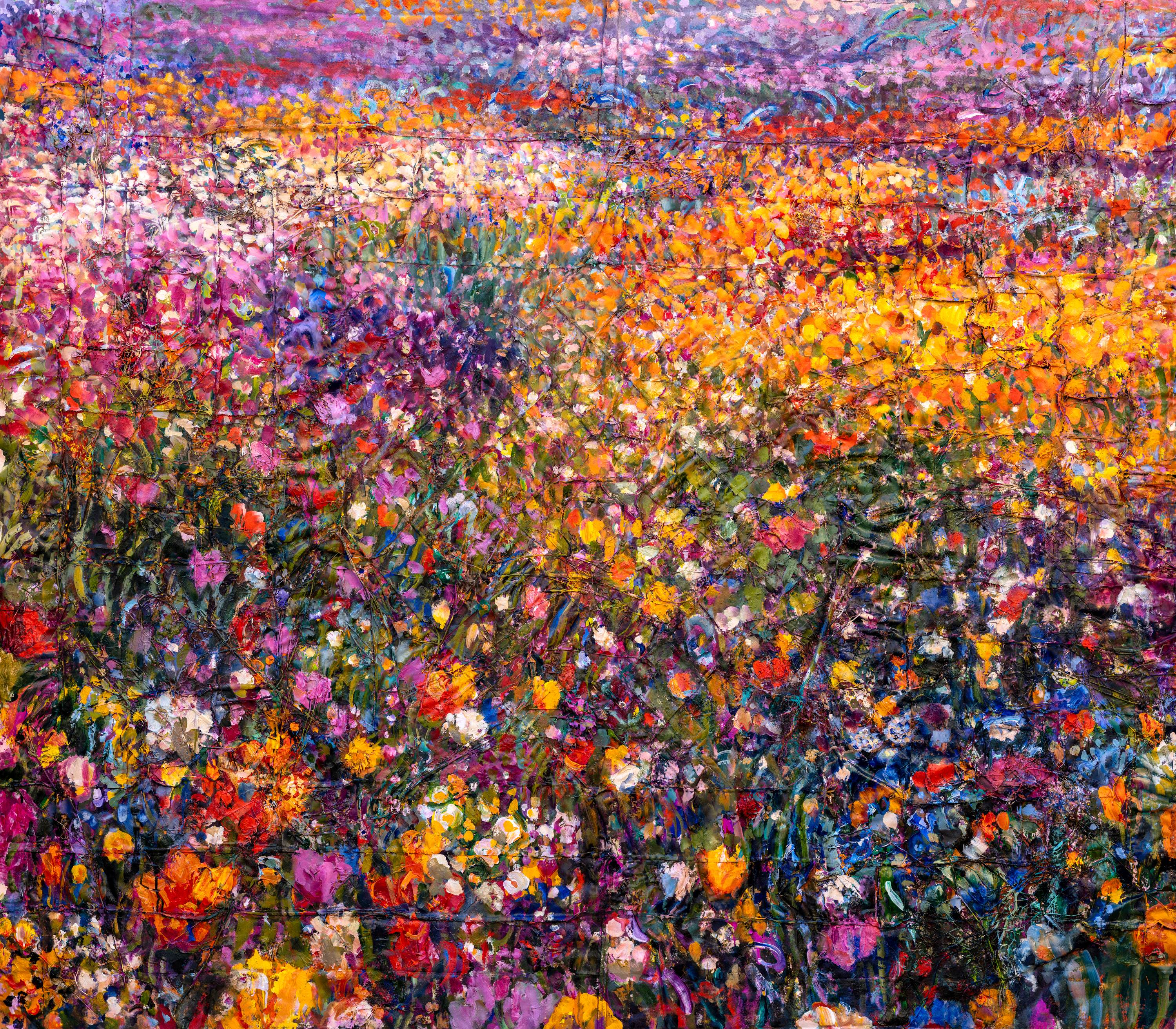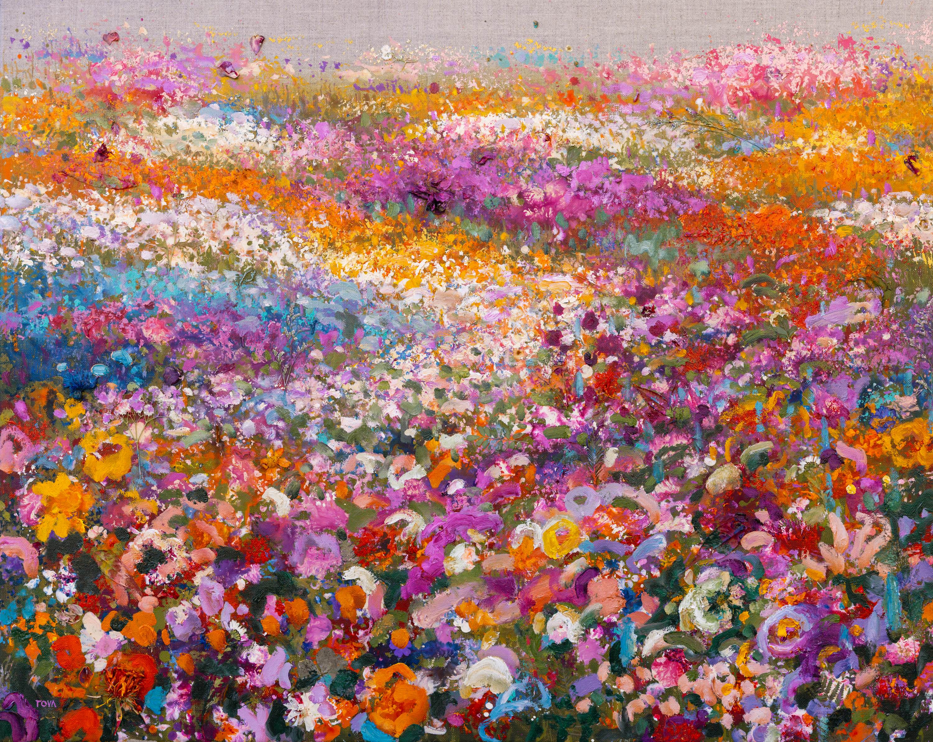 Once visitors enter the gallery, they enter an immersive experience, surrounded by works from the A Place to Rest series. Inspired by the gentle hills that burst into wildflowers each spring surrounding her studio, Tova’s paintings envision wildflower fields as inner sanctuaries. In these works, the meadows become a metaphor for the mind at rest: expansive and unforced. The less we interfere, the more they thrive.