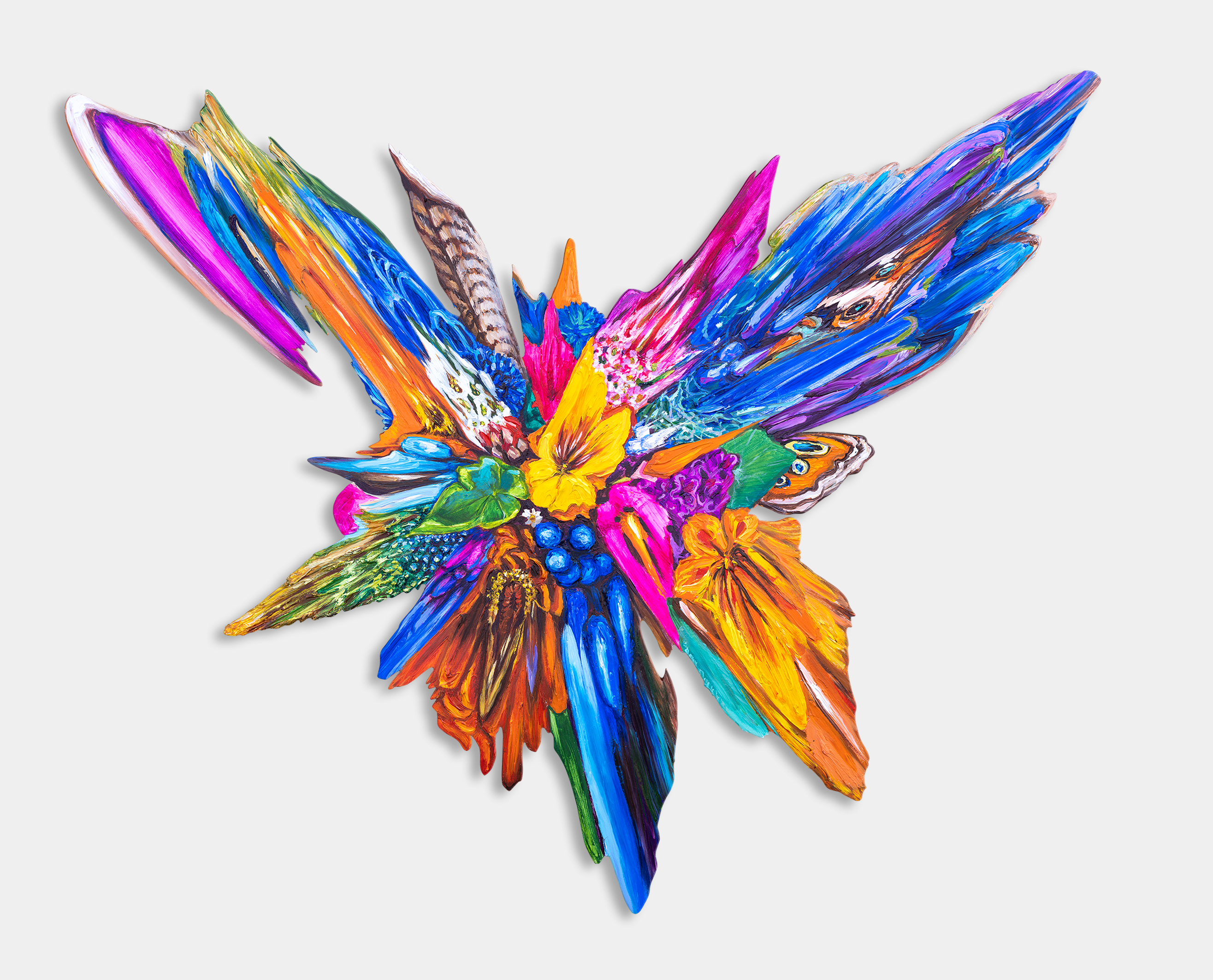 Work from Tova’s newest series, the eponymous A Place to Rest (My Tired Mind), greets visitors as they move through the grand stairwell. This contemplative body of work by the California-based artist explores emotional and physical burnout and what it means to truly rest. Interspersed in the stairwell are her signature “glitch” artworks from the Flux series, mirroring the perpetual motion of life. Created during the pandemic, they are inspired by the power of nature, which many of us became more acutely aware of during that time. The dynamic compositions symbolize the ever-flowing state of the universe, existing beyond our control.
