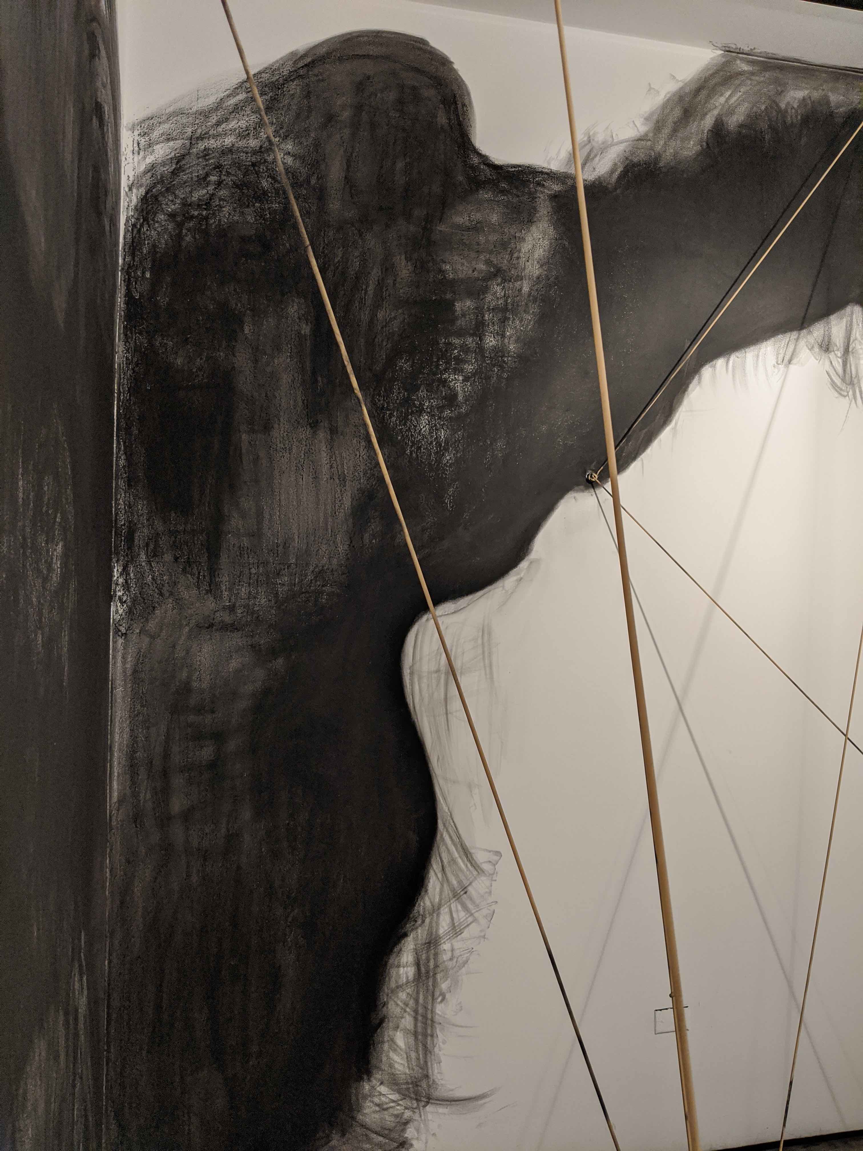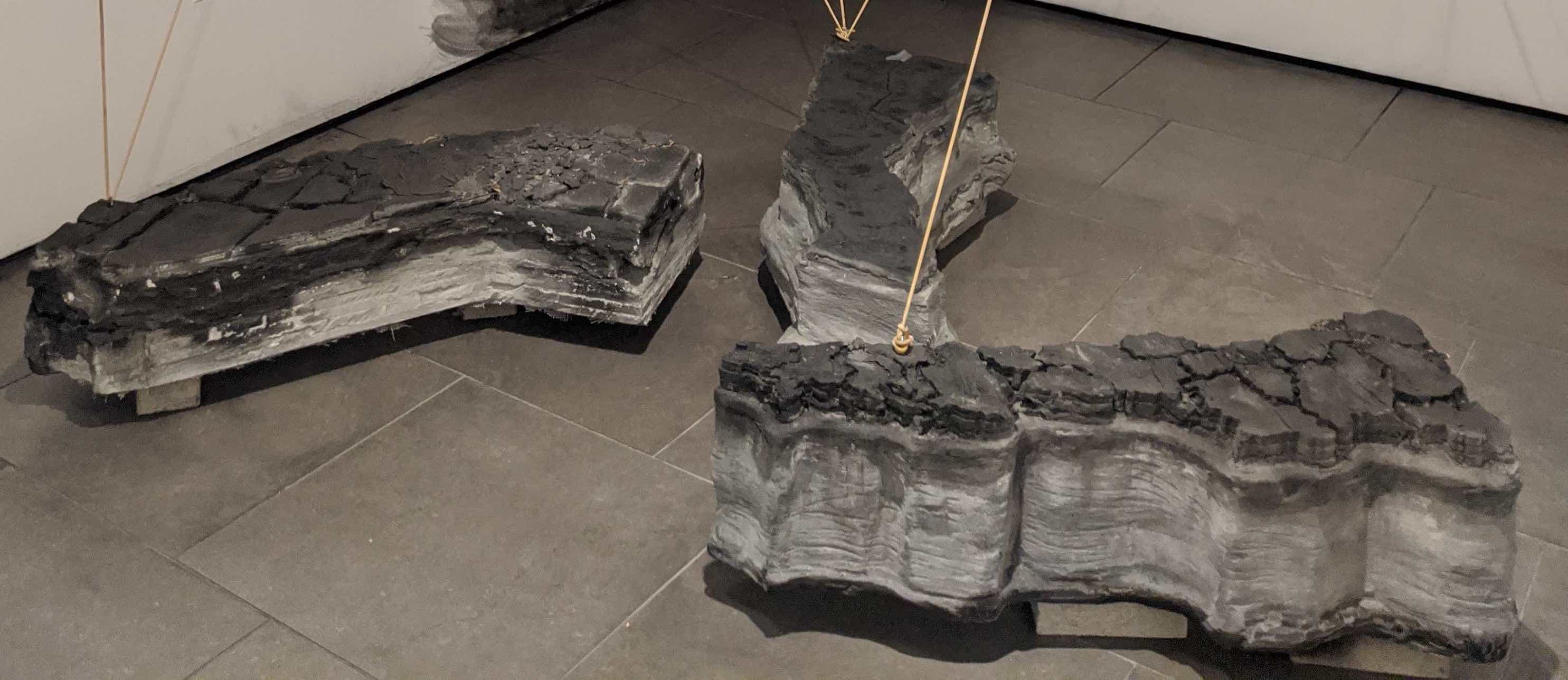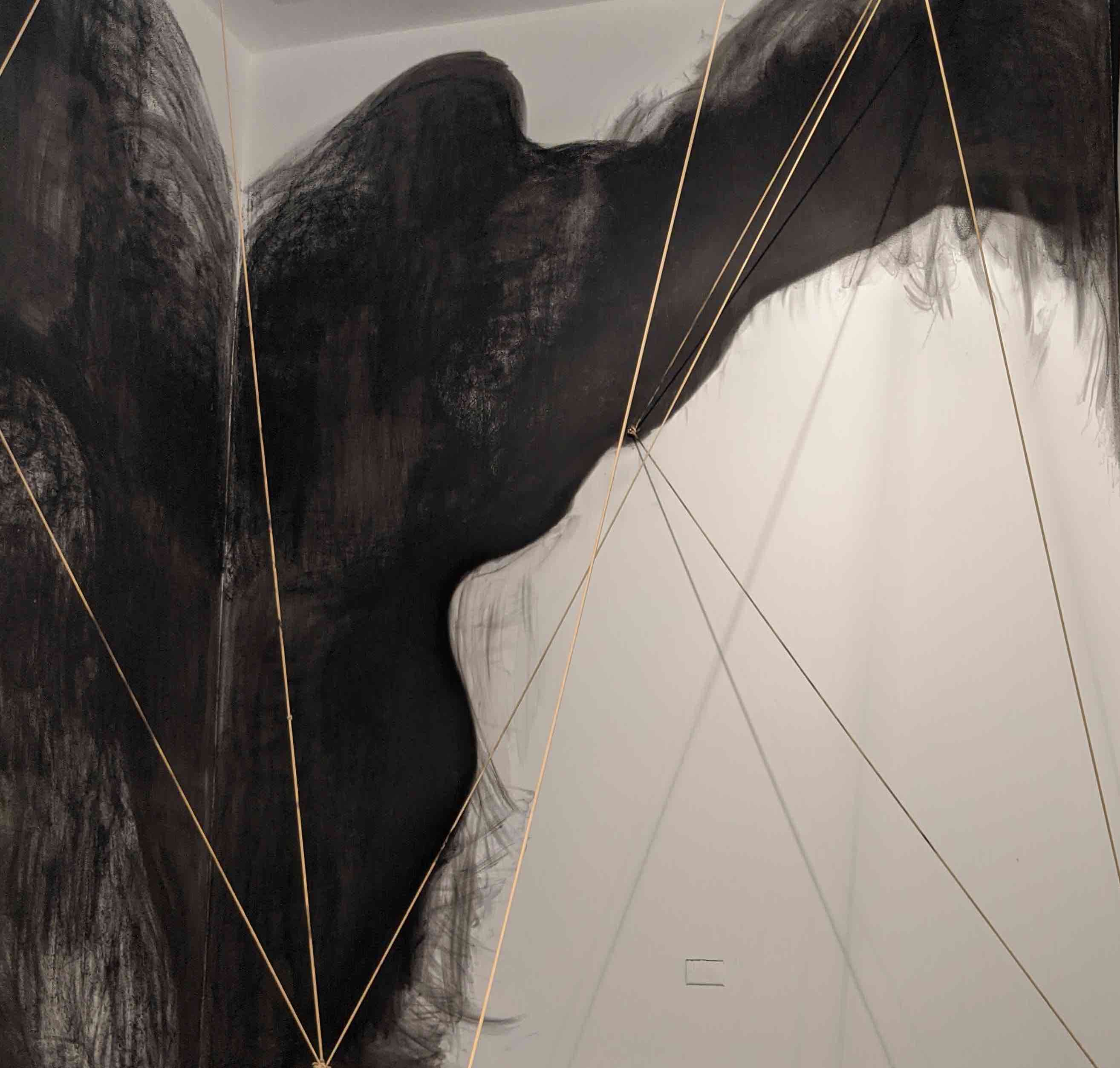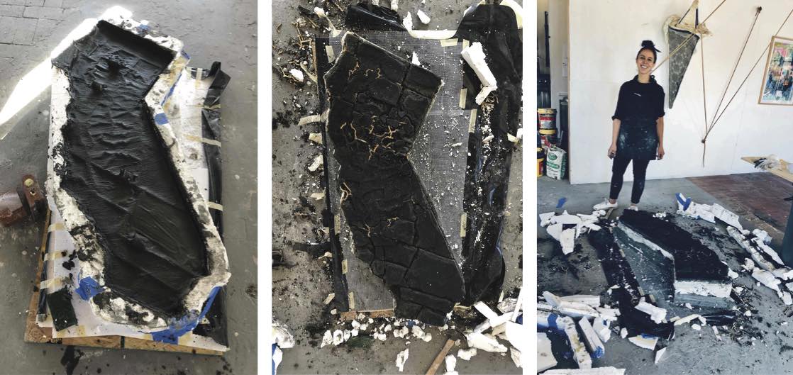 "The work presented in this exhibition echoes her story by underscoring the chaotic breakdown of class and race structures after colonialism, territorialism, and human mobility. My studio practice is based in Tijuana and San Diego, and I employ found objects to forge new and poetic meanings around ethnic and gender identities, the ongoing circulation of culture and goods, and the possibilities of cultural hybridity. The concrete maps in this exhibition connect Nayeli’s journey with elastic slings, suggesting the bouncing and volatile changes in our borders. The embroidered imagery parallels the novel by taking serious political, economic, and migratory subjects with humor, stimulating reflections on our current status quo, metaphoric associations, and constructing new procedural semantics." –Griselda Rosas