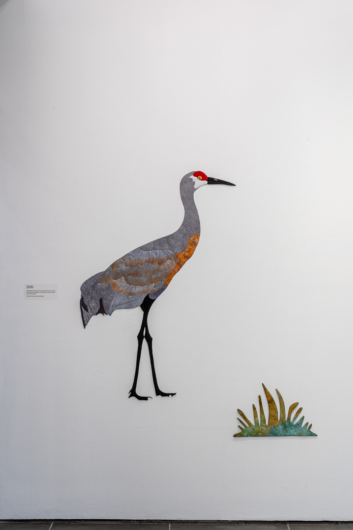 Artist Charlotte Bird is fascinated by the cycles of life in nature. She is troubled by observations that climate change is slowly and subtly changing the birds’ lives. The success of the sandhill crane rests on its ability to adapt to diverse habitats extending from the Arctic to the subtropics. The birds cannot adapt to nesting grounds flooded by melting permafrost or to flooded feeding-grounds in Nebraska and California.