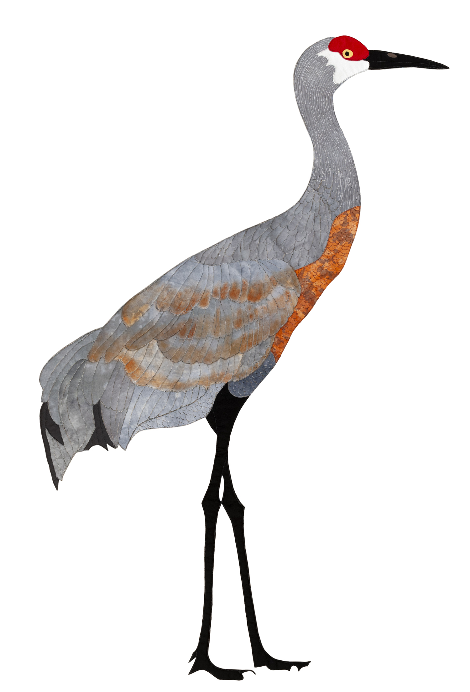 Artist Charlotte Bird is fascinated by the cycles of life in nature. She is troubled by observations that climate change is slowly and subtly changing the birds’ lives. The success of the sandhill crane rests on its ability to adapt to diverse habitats extending from the Arctic to the subtropics. The birds cannot adapt to nesting grounds flooded by melting permafrost or to flooded feeding-grounds in Nebraska and California.