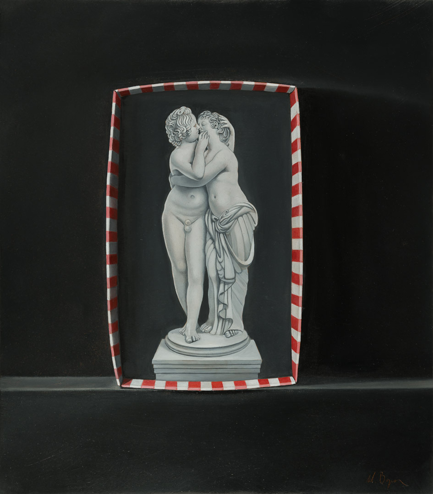Bryce pursues an open exploration of painting and uses the fundamental elements—of paint and wood panel—to skillfully investigate contemporary ideas and ideologies. Deeply aware of the historical precedents of realist painting, he sometimes evokes images and memories, while at other times uses the elements of painting to its own end. Inherent throughout his work are issues of perception and understanding. With technical virtuosity, Bryce develops his narratives with cleverness and wit that engage the viewer in his distinctive artistic language. Fundamental to this exhibition is the commanding use of Bryce's exquisite pictorial technique, capable of portraying an object, as well as a classic work of art, in the most faithful way.