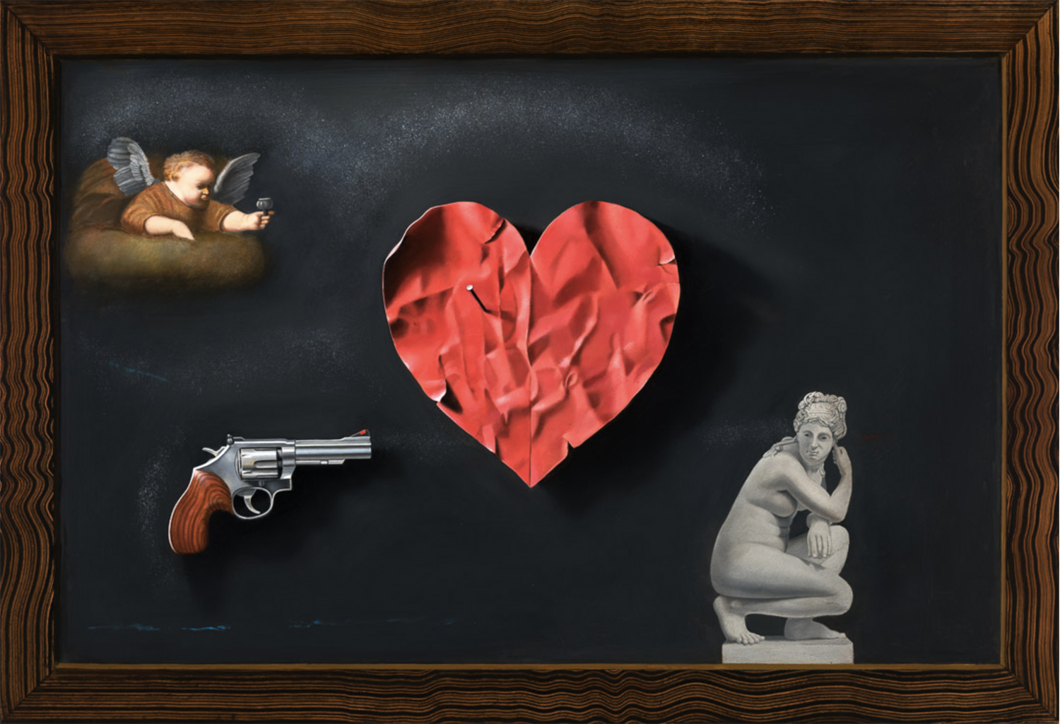 Comprising 39 paintings, Mark Bryce: Love & War explores the artist’s deepening interest in universal topics such as love, violence, human frailty, and loneliness.