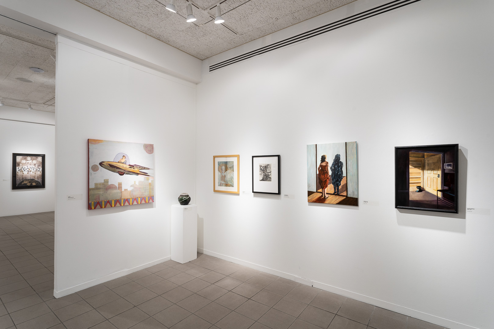 Jurying the artworks to be included in this year’s exhibition was a challenge. Juror Moctezuma adds that, “As a curator and professor of art, I really enjoyed seeing the variety of approaches, unique concepts, media manipulation, and attention to craftsmanship. It was difficult to narrow it down to a limited selection. We wanted to include as many works as possible and as I made my selections, visual connections and relationships in mood and theme clearly emerged.