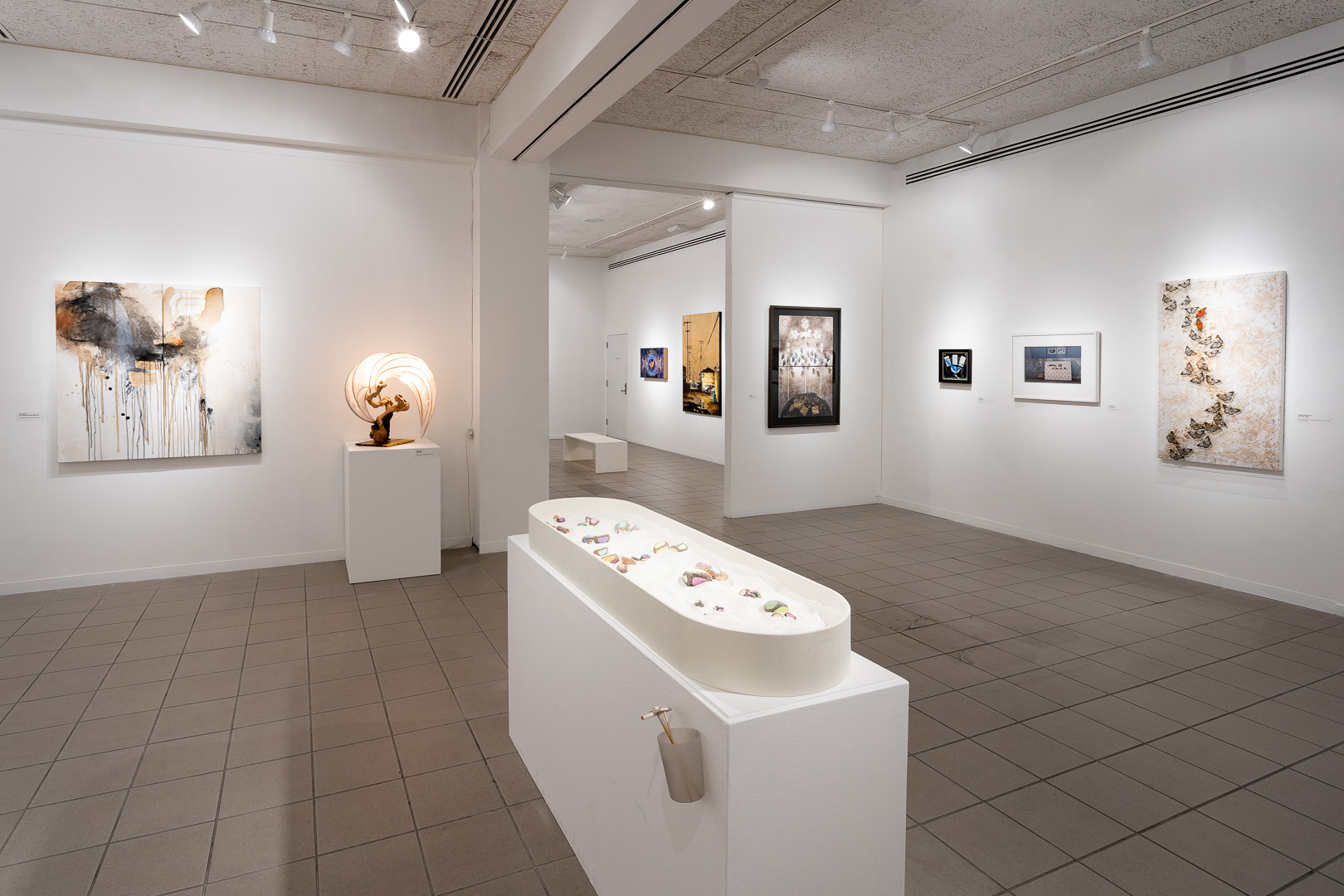 Jurying the artworks to be included in this year’s exhibition was a challenge. Juror Moctezuma adds that, “As a curator and professor of art, I really enjoyed seeing the variety of approaches, unique concepts, media manipulation, and attention to craftsmanship. It was difficult to narrow it down to a limited selection. We wanted to include as many works as possible and as I made my selections, visual connections and relationships in mood and theme clearly emerged.