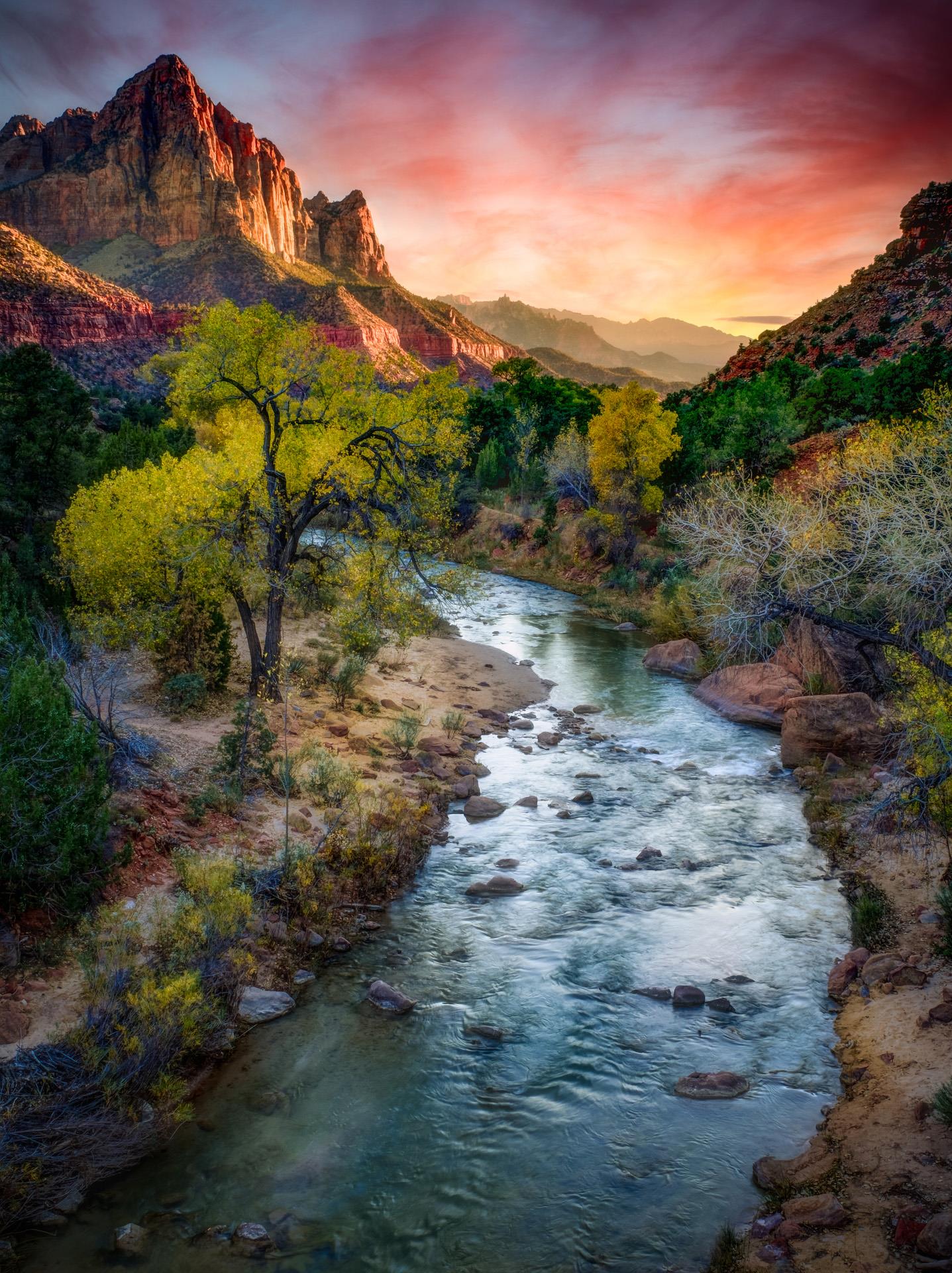 Susan Kanfer, Sunset at the Watchman, Zion National Park
