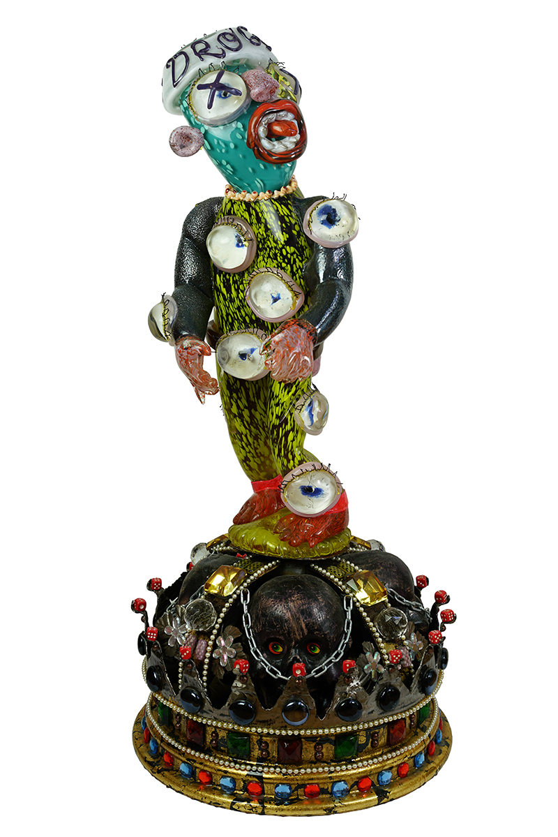 Einar and Jamex De la Torre, El Kingpin, 2010. Blown glass and mixed media, 38" x 16" x 16". From the exhibition San Diego Surreal, curated by Susan M. Anderson, 2019. Collection of the artists.