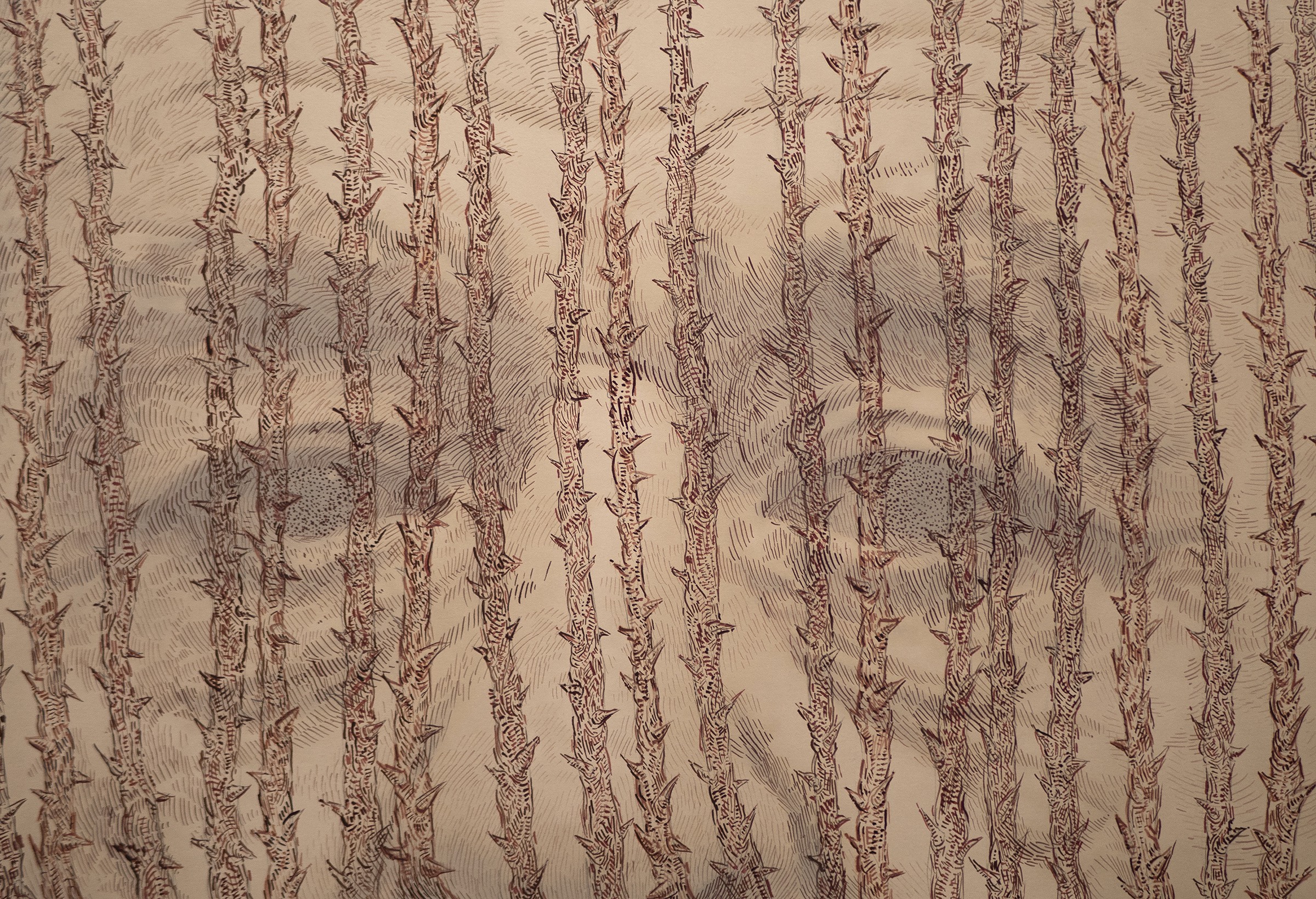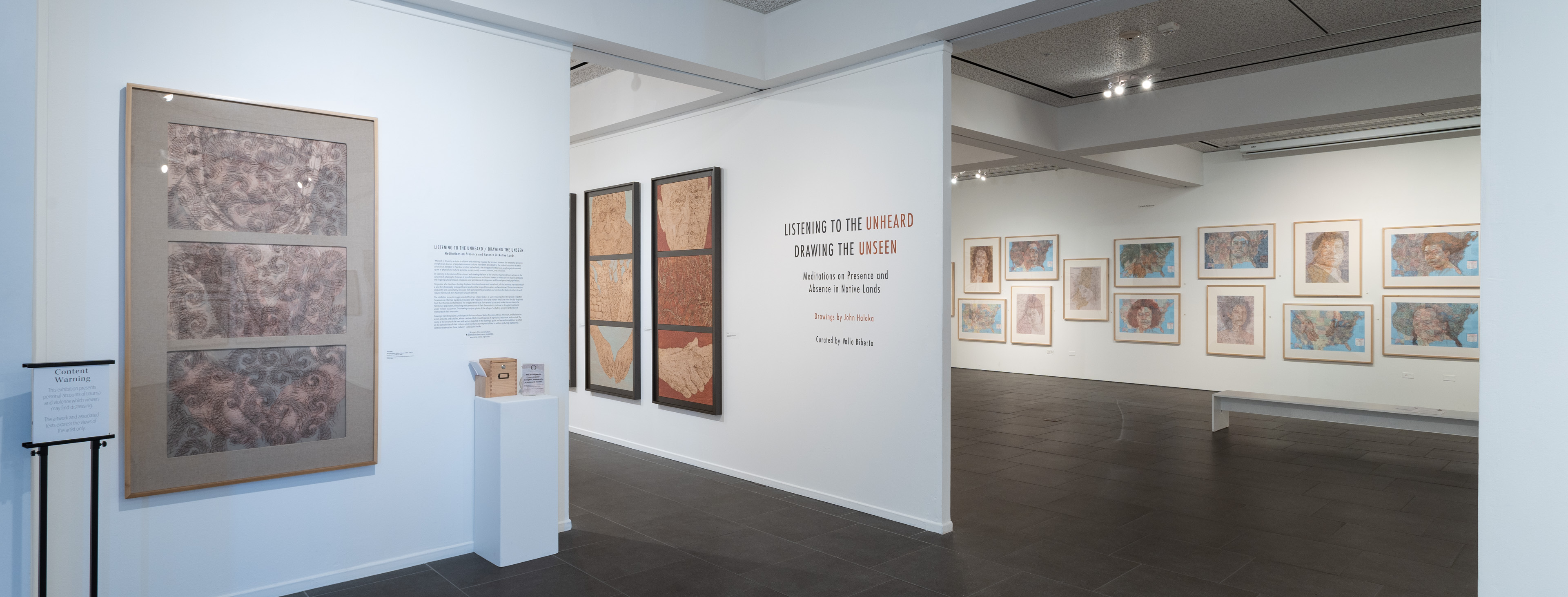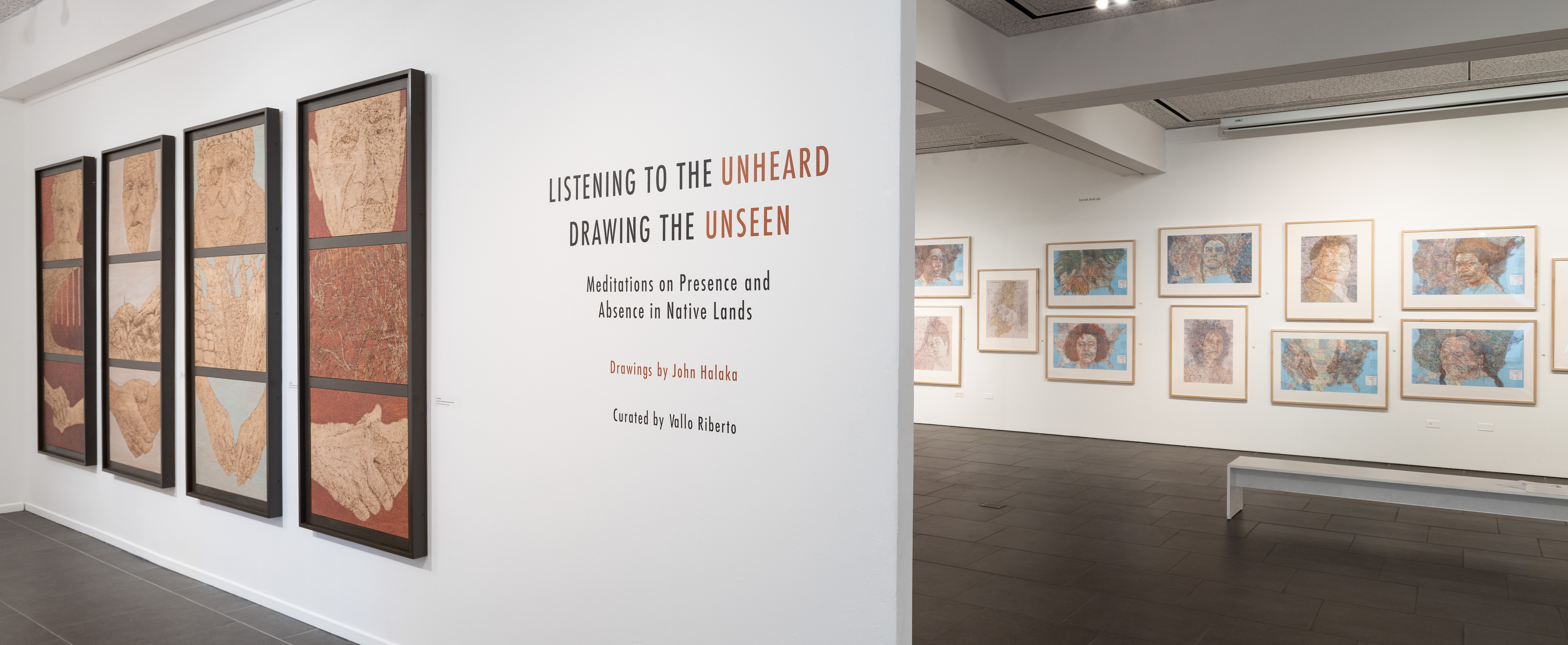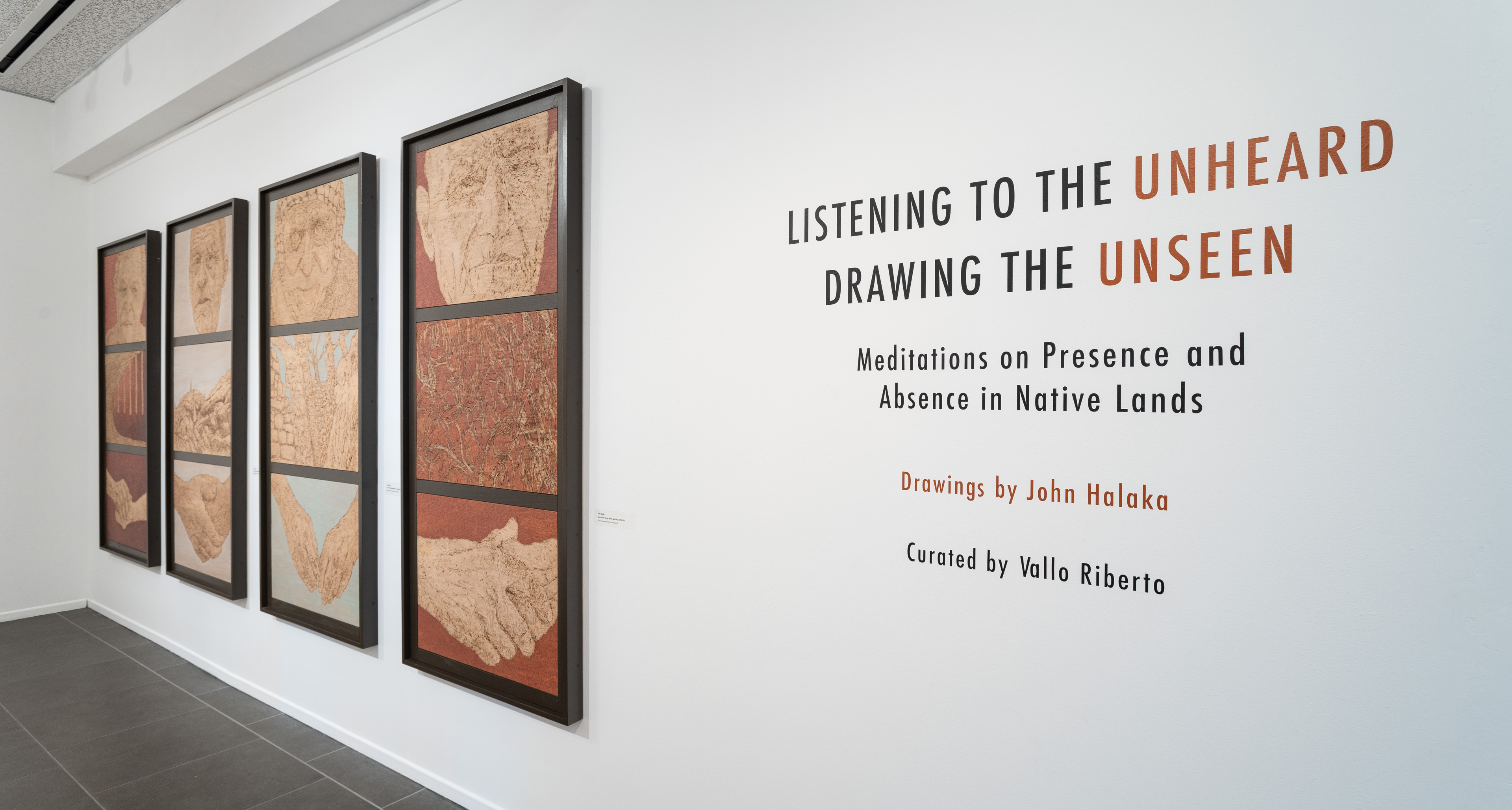 LISTENING TO THE UNHEARD / DRAWING THE UNSEEN Meditations on Presence and Absence in Native Lands Drawings by John Halaka installed at OMA