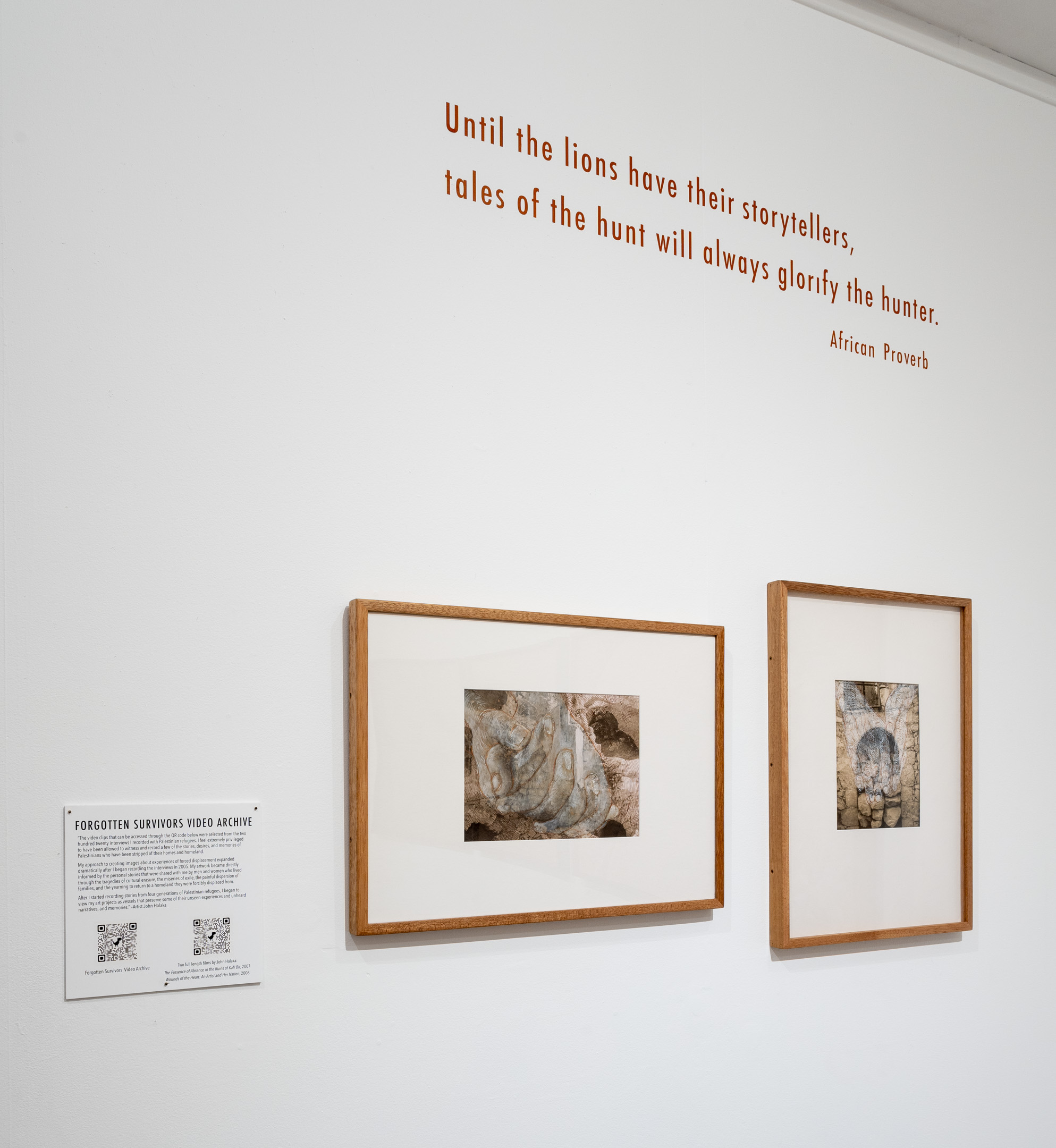 This exhibition consists of works selected from two related projects developed by San Diego-based visual artist John Halaka. The drawings reflect on experiences of forced displacement and indigenous survival.