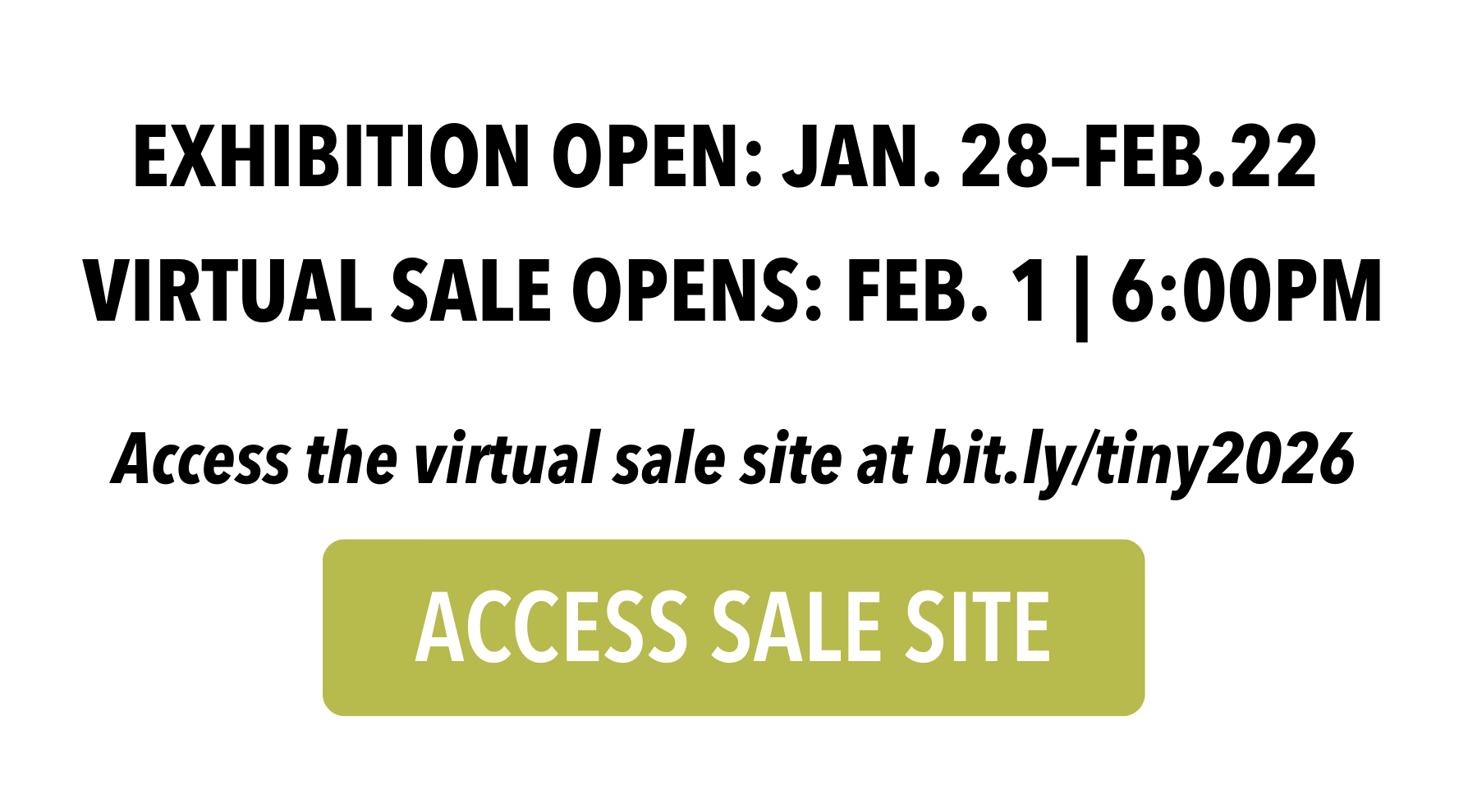 Yes, all other Tinies will be sold in the same way as previous years—at a flat price of $25 per artwork plus taxes and fees. You can purchase artwork on the virtual sale site at bit.ly/tiny2026.